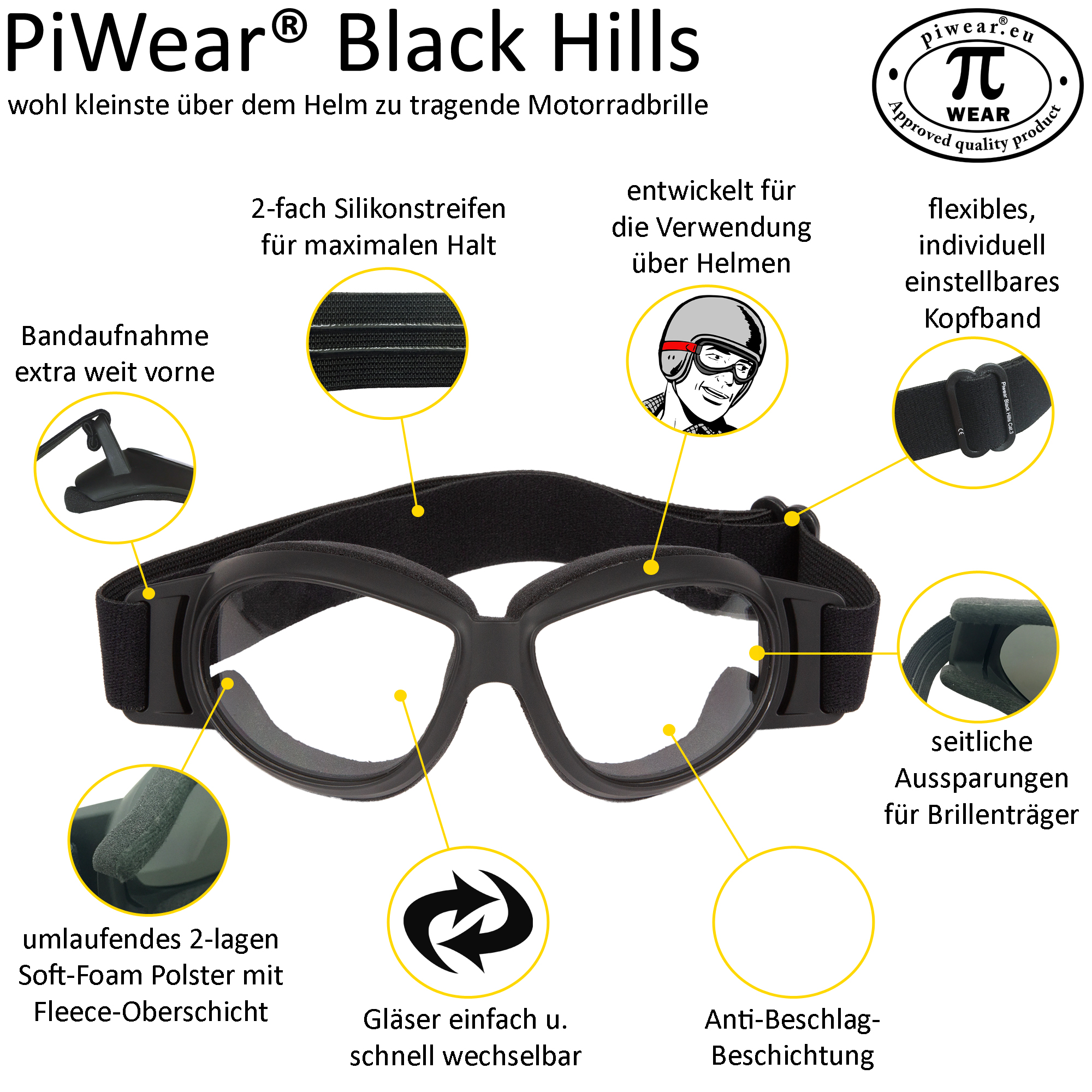 Stap op je motor en voel de wind door je haren terwijl je de weg trotseert met de Black Hills 24 DCL motorbril van PI-Wear. Deze bril is ontworpen voor de echte rijder die comfort en stijl wil combineren met optimale bescherming. Dankzij het doordachte design en hoogwaardige materialen geniet je van een perfecte pasvorm en een helder zicht, ongeacht de omstandigheden. Of je nu over kronkelende bergwegen scheurt of ontspannen door de stad cruiset, de Black Hills 24 DCL zorgt ervoor dat je ogen beschermd blijven tegen wind, stof en zonlicht, waardoor je je volledig kunt focussen op de rit en de vrijheid die het motorrijden biedt.