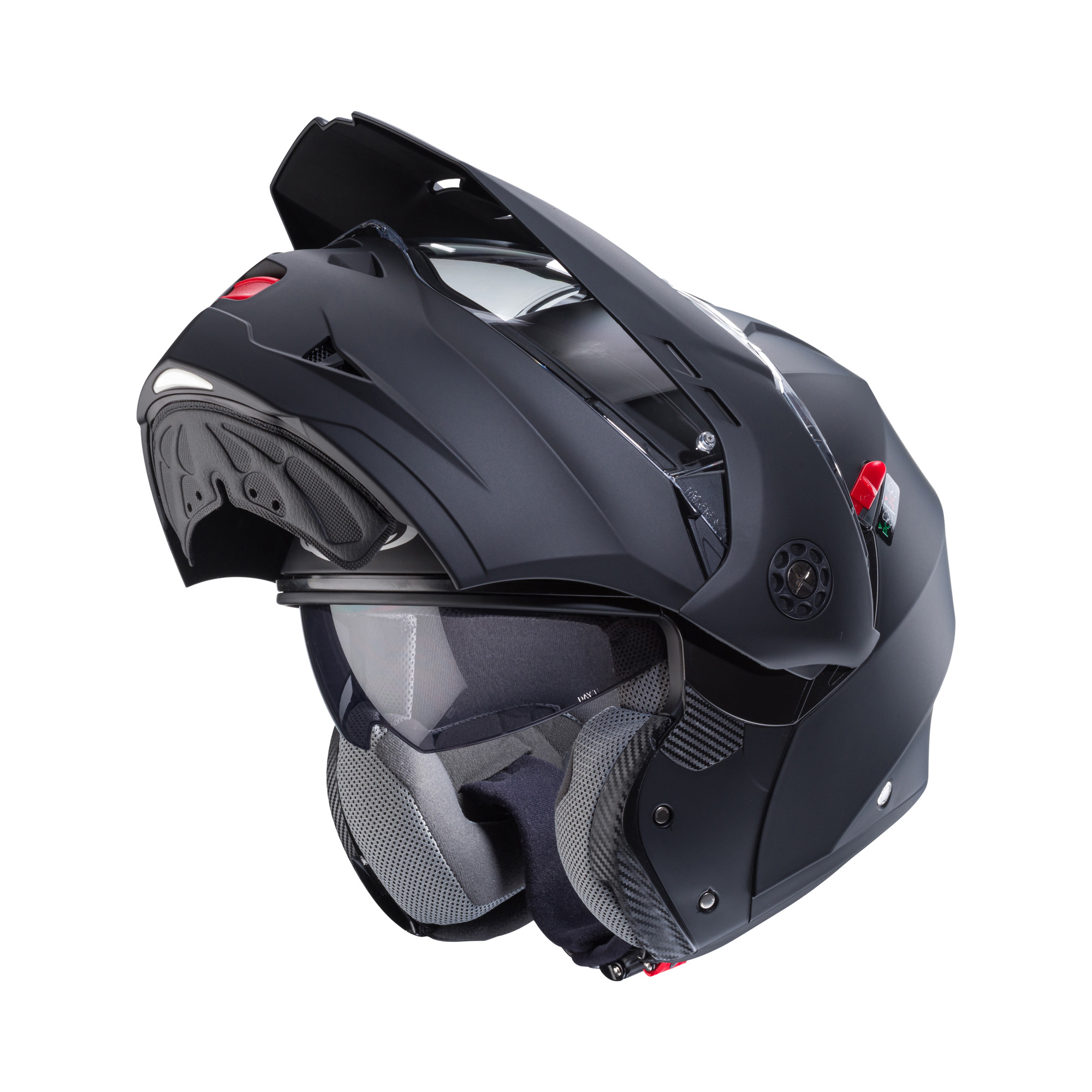 De Caberg Tourmax X systeemhelm in maat S combineert stijl en functionaliteit moeiteloos. Met zijn strakke mat zwarte afwerking straal je niet alleen klasse uit, maar geniet je ook van een uitstekende bescherminggemakkelijke en snelle bediening onderweg. De Tourmax X biedt een optimale pasvormuitstekende ventilatie