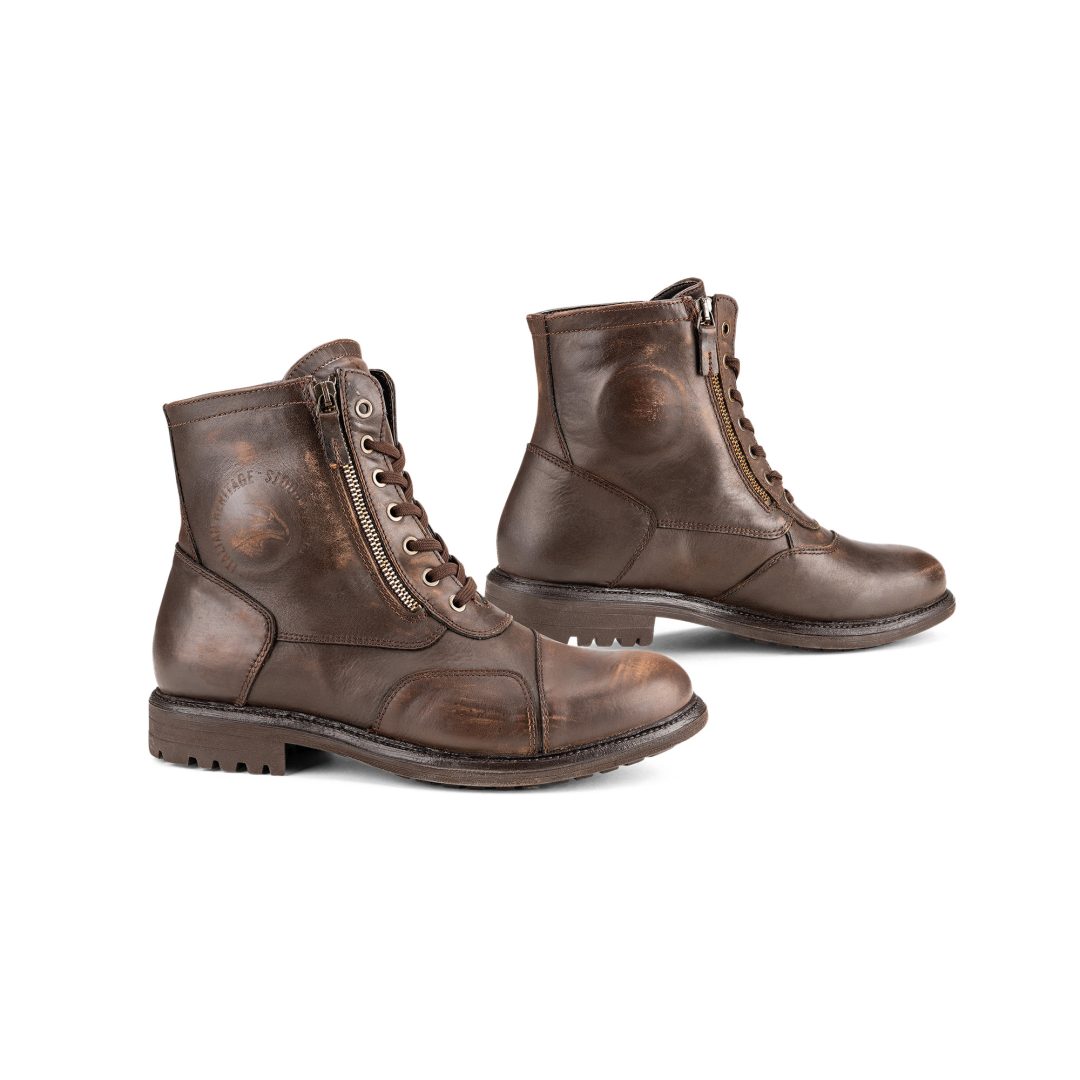 Waterdichte Falco Aviator laars in bruin, maat 40, ideaal voor heren die comfort en bescherming zoeken tijdens het motorrijden. Duurzaam en stijlvol