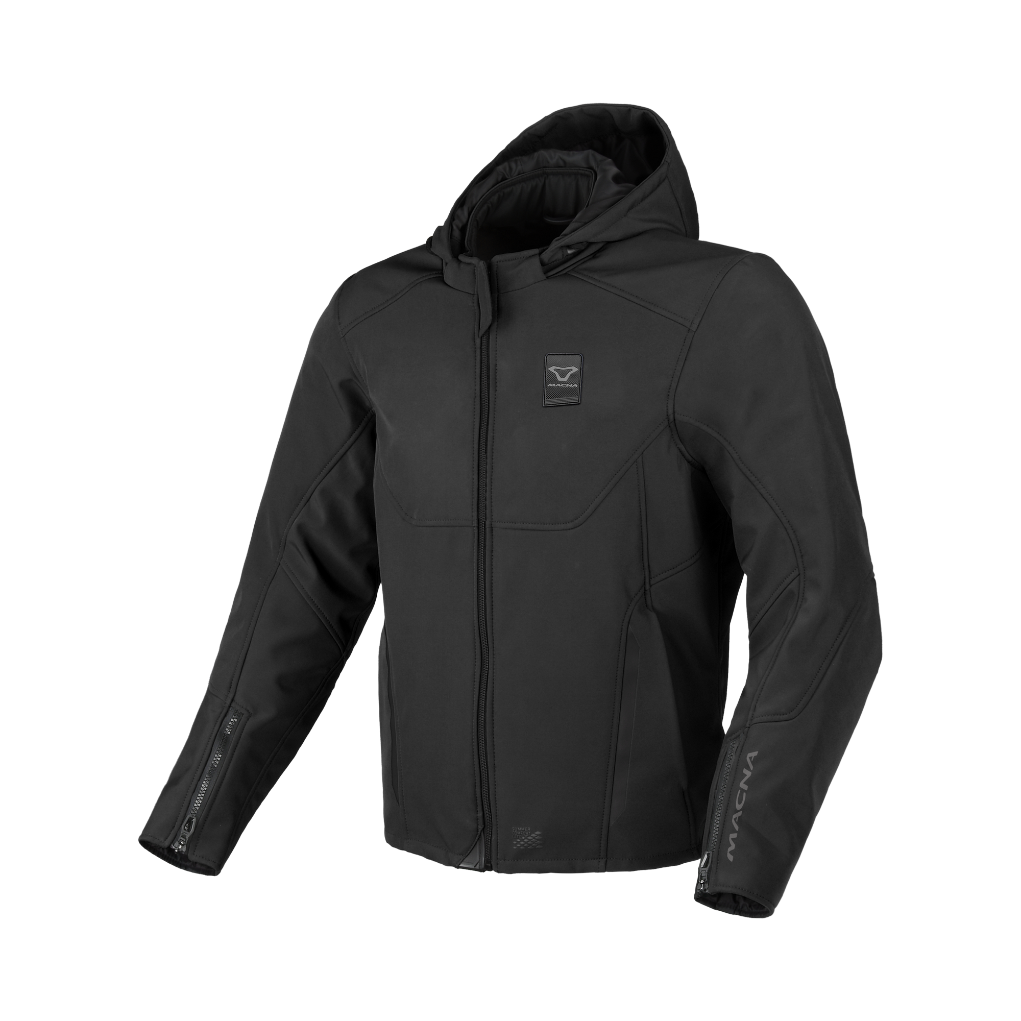 Ademend textiel en optimale ventilatie houden je koel en beschermd tijdens zomerritten in de stoere, mat zwarte Macna Atracor motorjas.