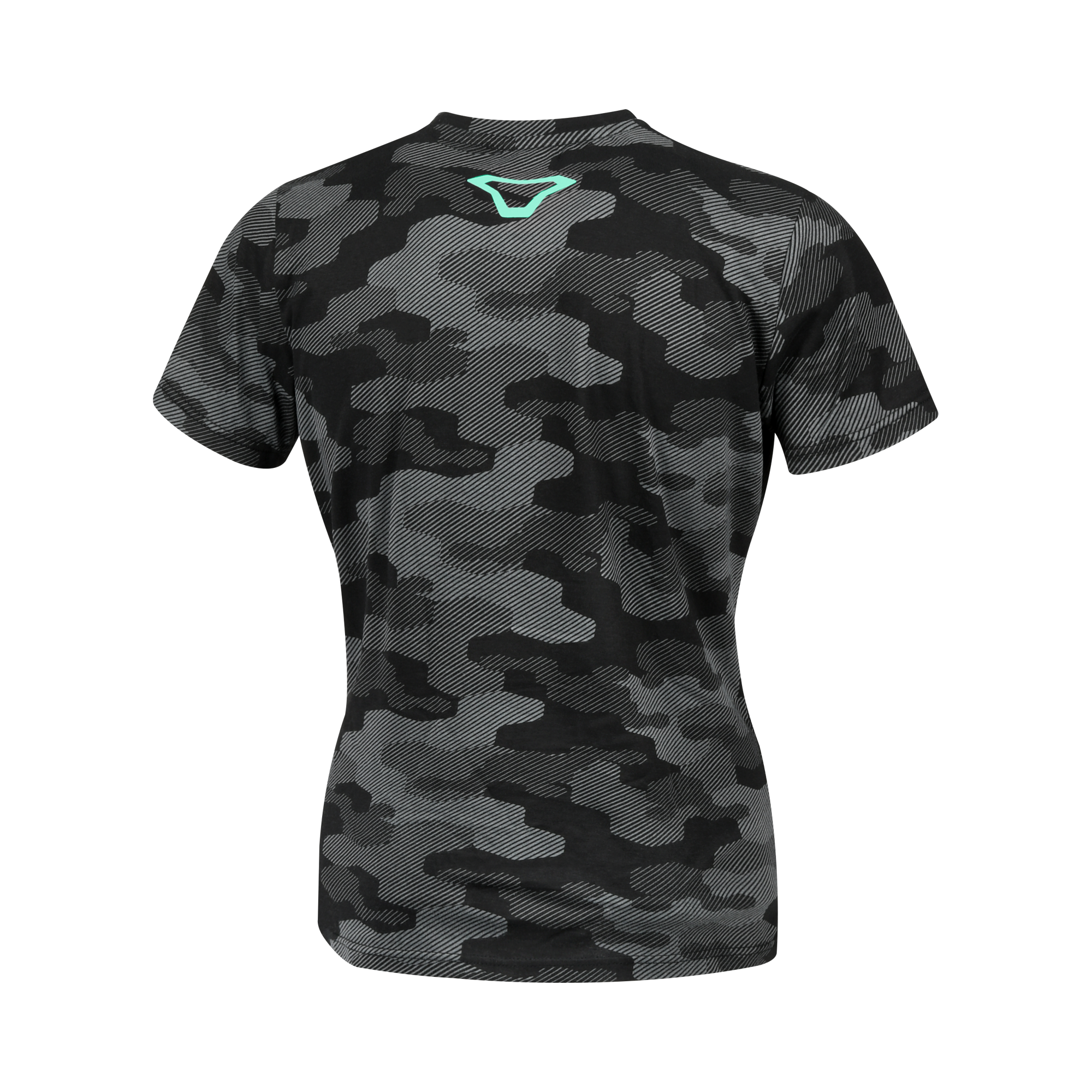 Het shirt is uitgevoerd in een stijlvolle combinatie van zwart met groene details.