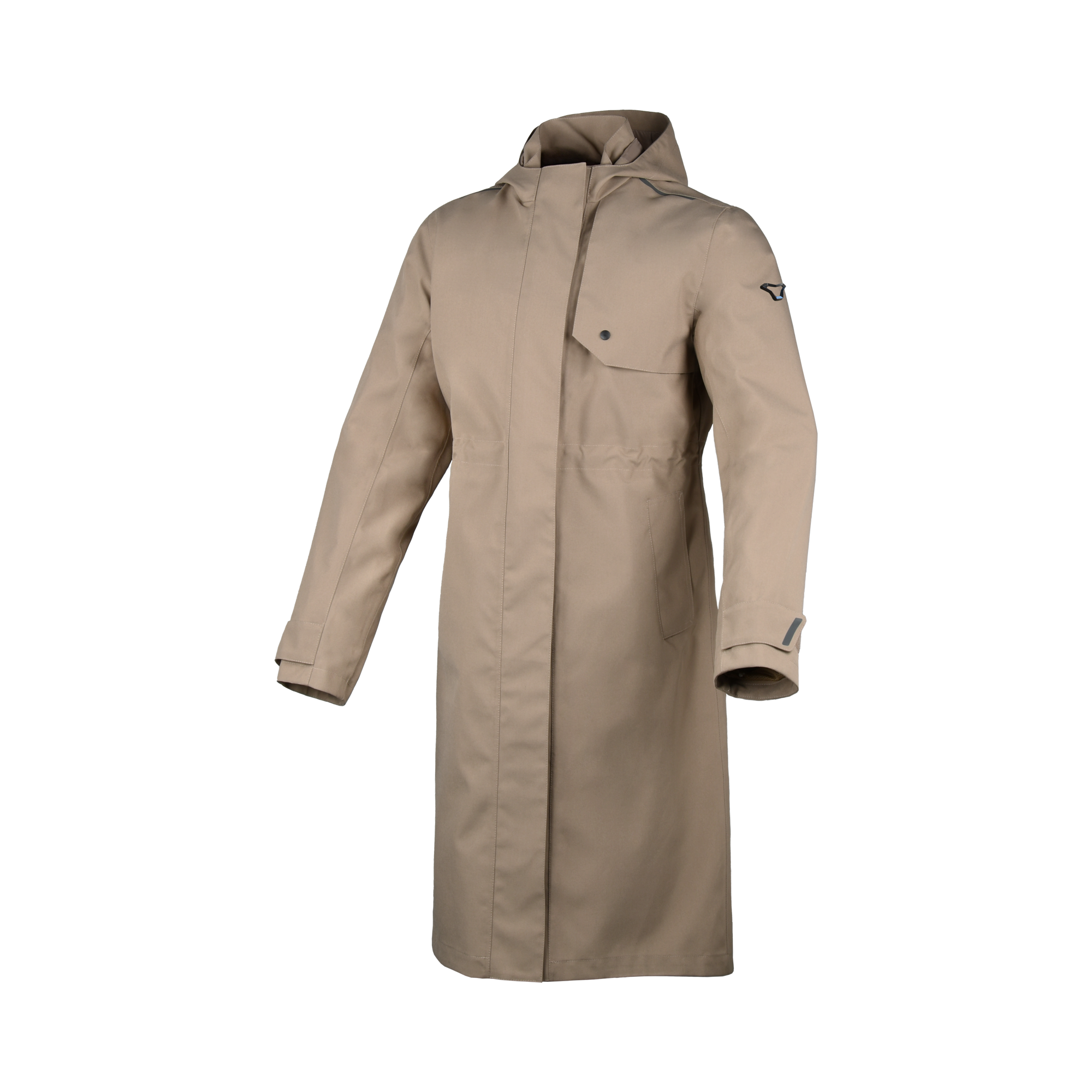 Volledig waterdicht en ademend materiaal houdt je droog en comfortabel tijdens elke rit in de stijlvolle beige Macna Swan regenjas maat S.
