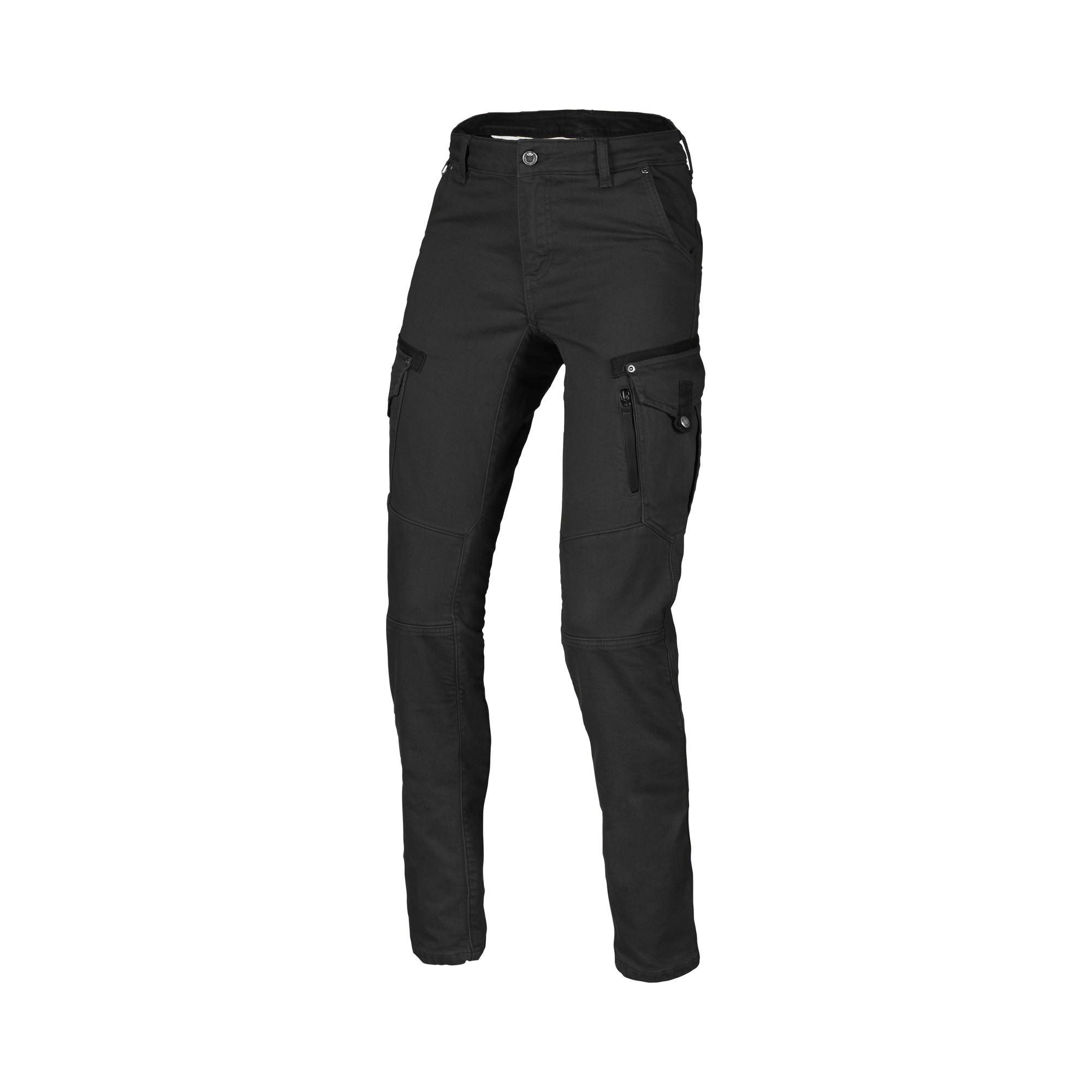 Hoogwaardige materialen bieden optimale bescherming en comfort in de zwarte Macna Takar dames motorjeans maat 26 voor elke rit.