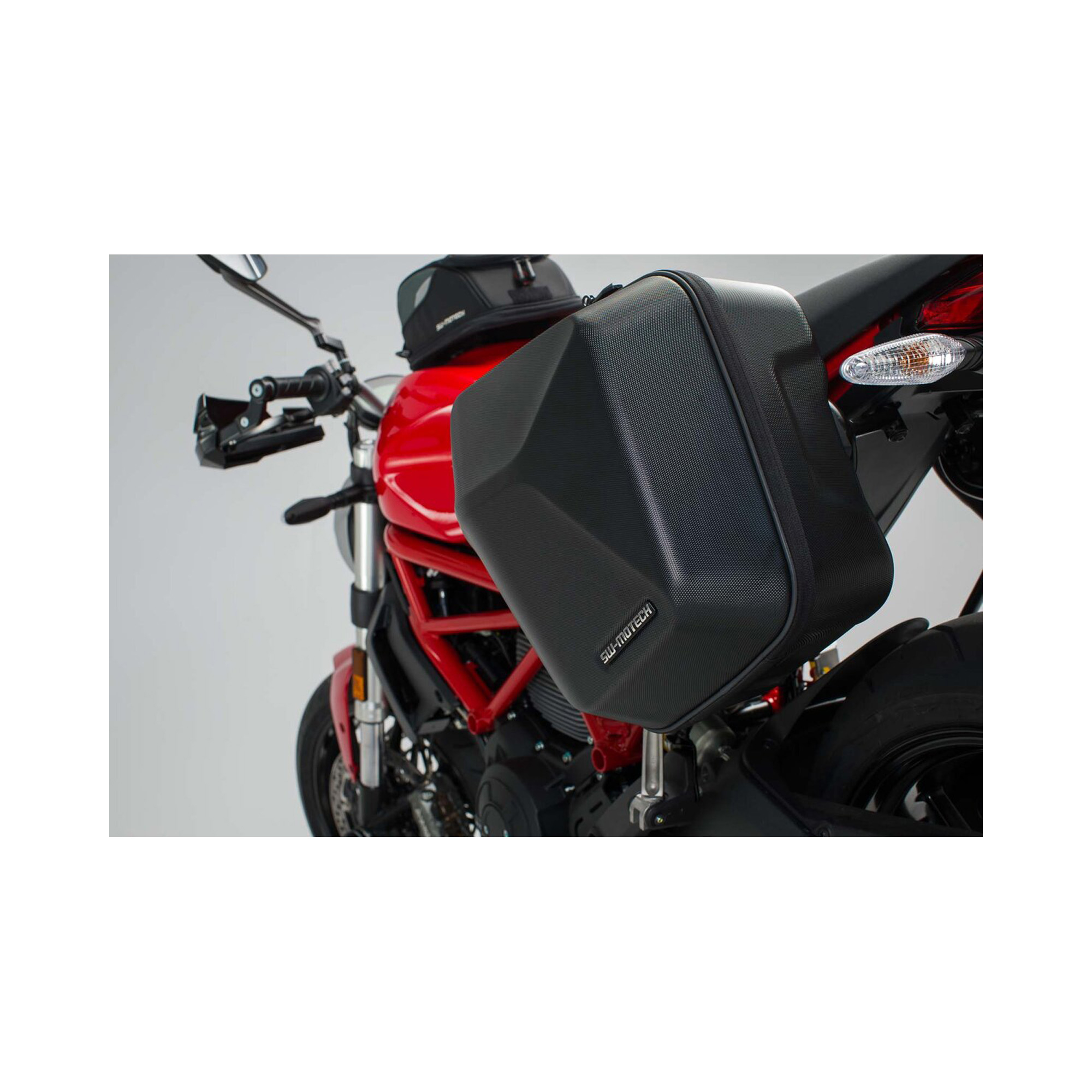 Lichtgewicht en robuuste ABS zijkoffers die perfect passen op jouw Ducati Monster 797 vanaf 2016 voor extra bagageruimte en optimale stabiliteit.
