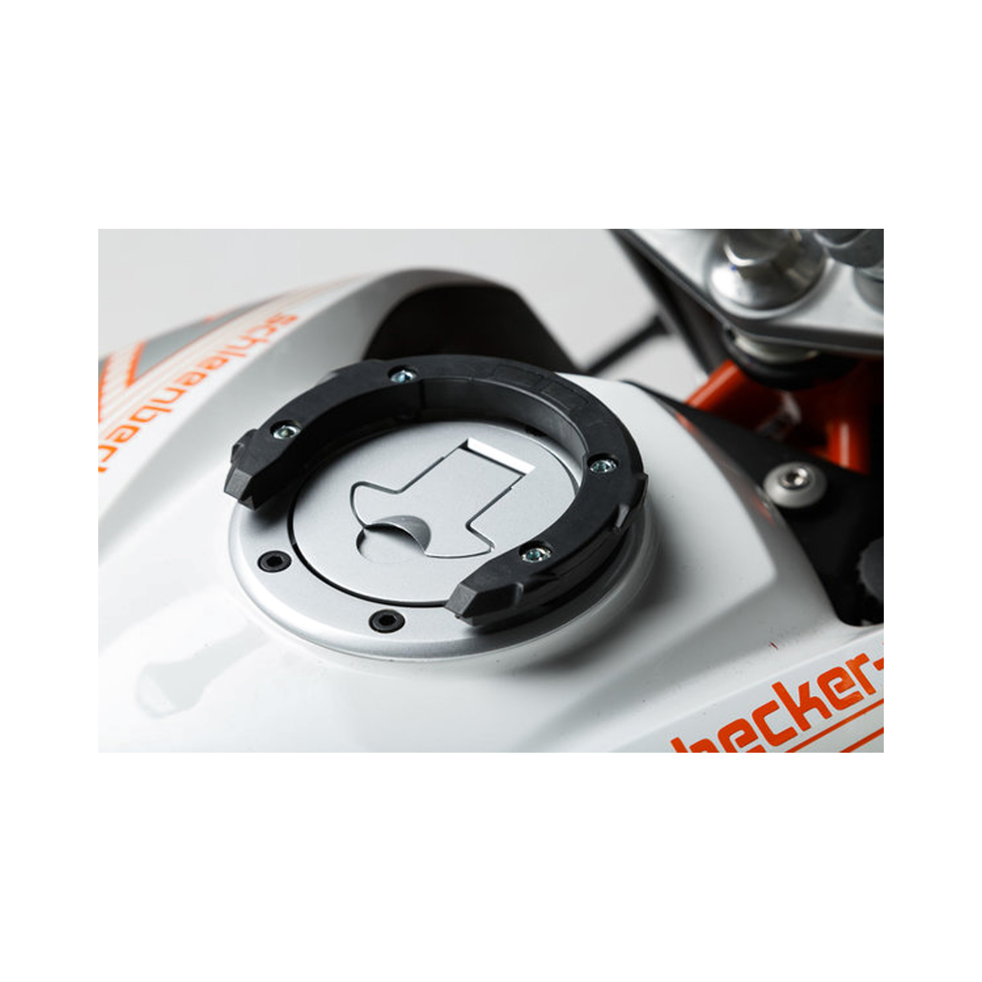 De Quick-Lock Evo tankring maakt het mogelijk om je tanktas snel en veilig te bevestigen en te verwijderen, wat zorgt voor extra gemak tijdens het reizen.